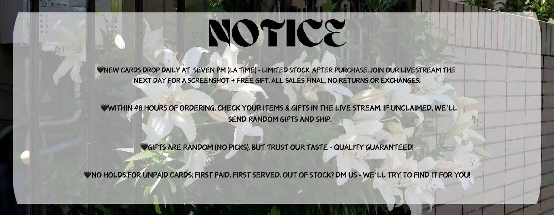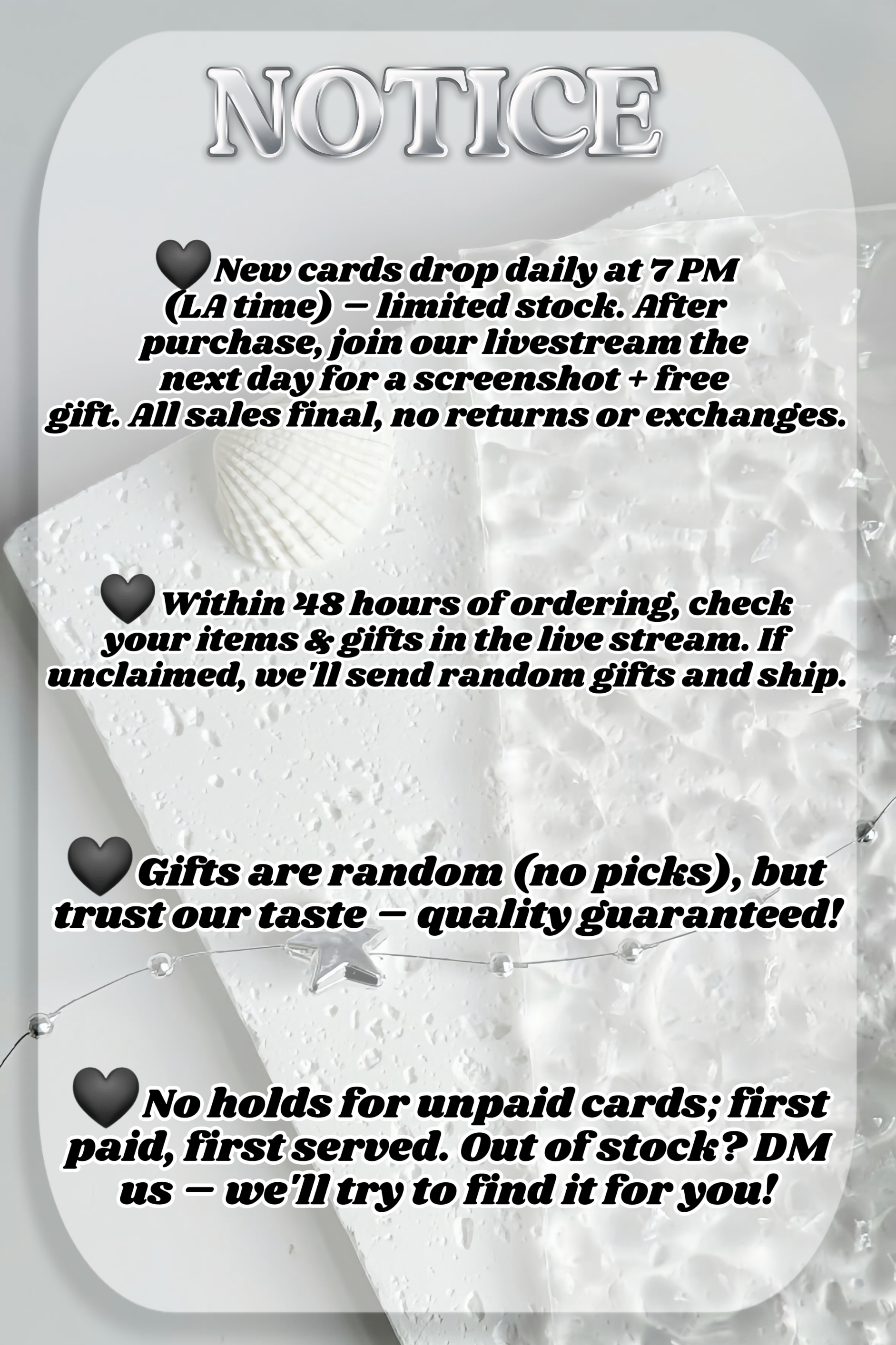 💌To keep things fair for everyone, all sales are final, and gifts are randomly selected (no picking, but we promise we only send out nice ones!). We don’t hold unpaid items – first paid, first served.